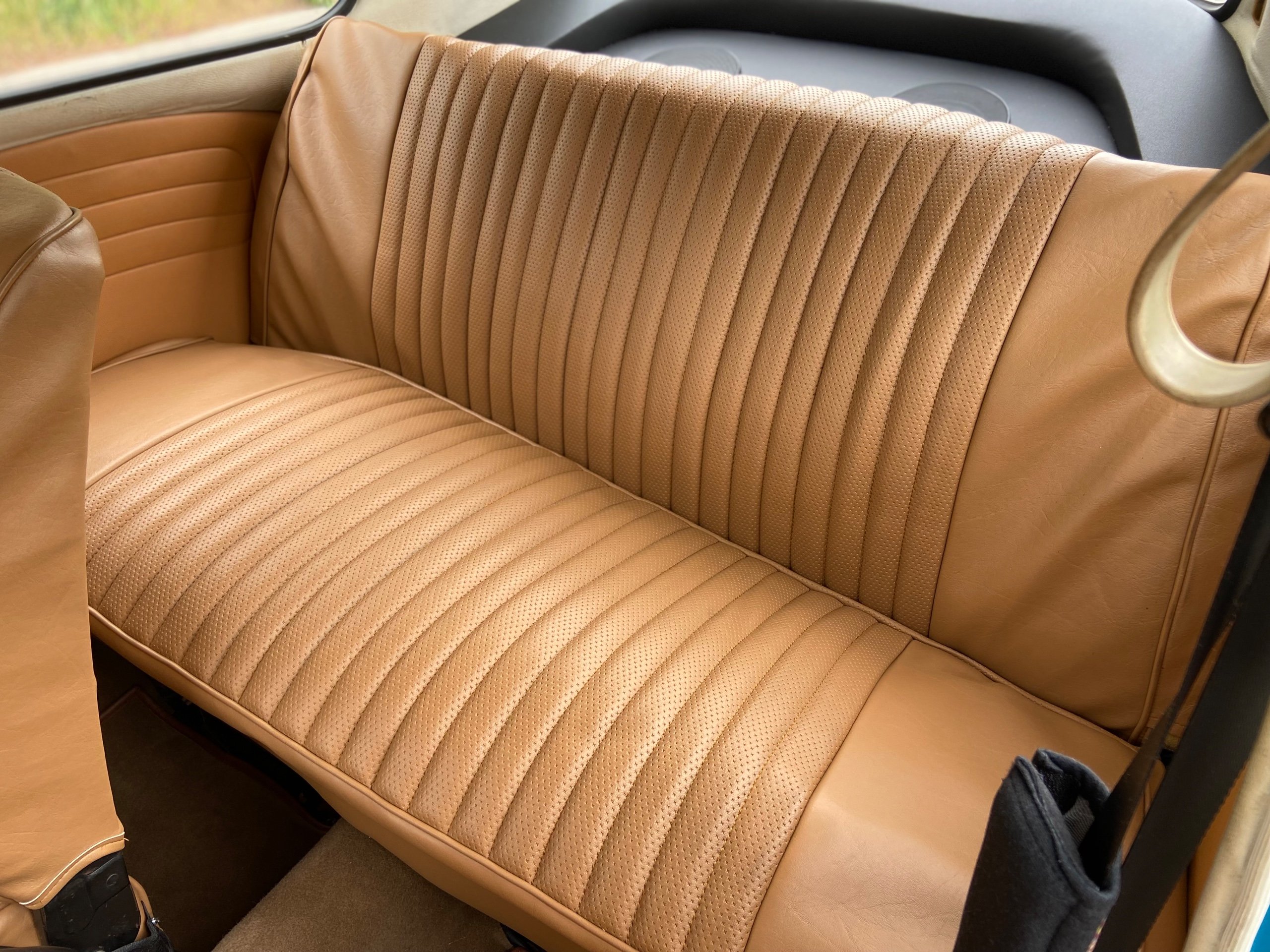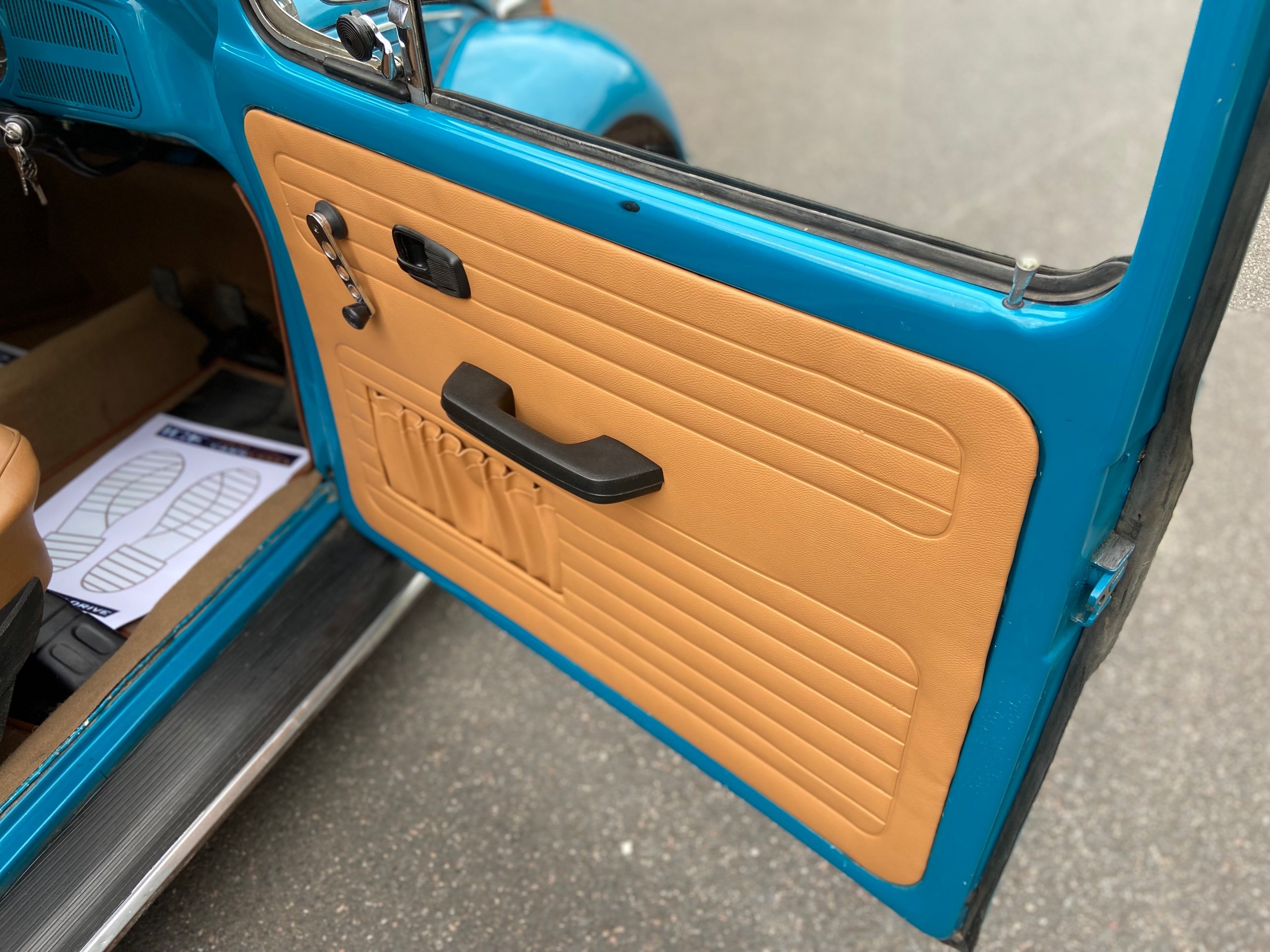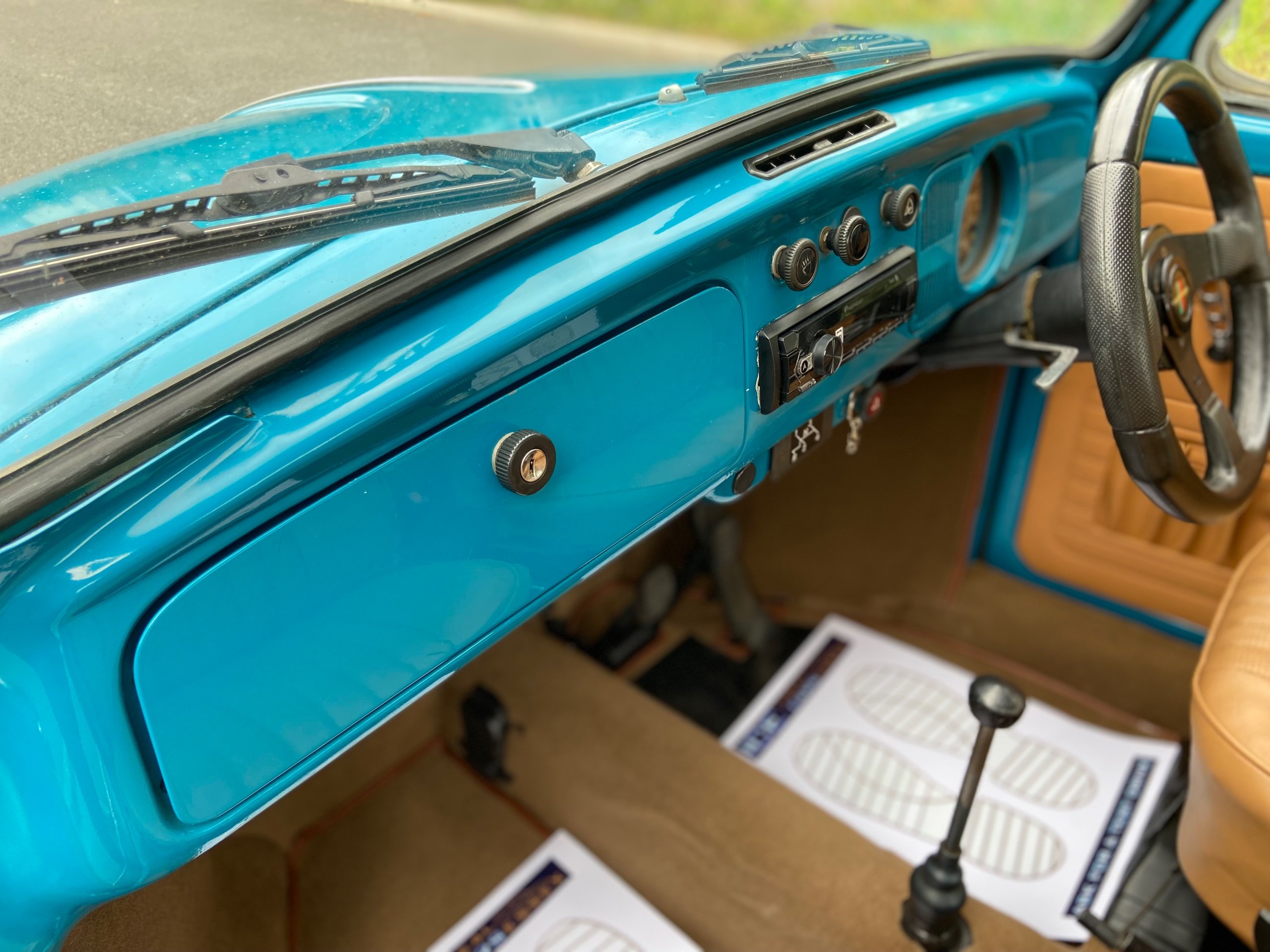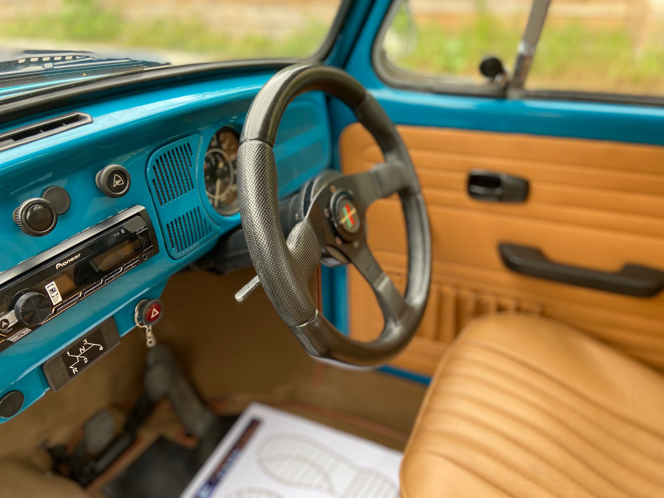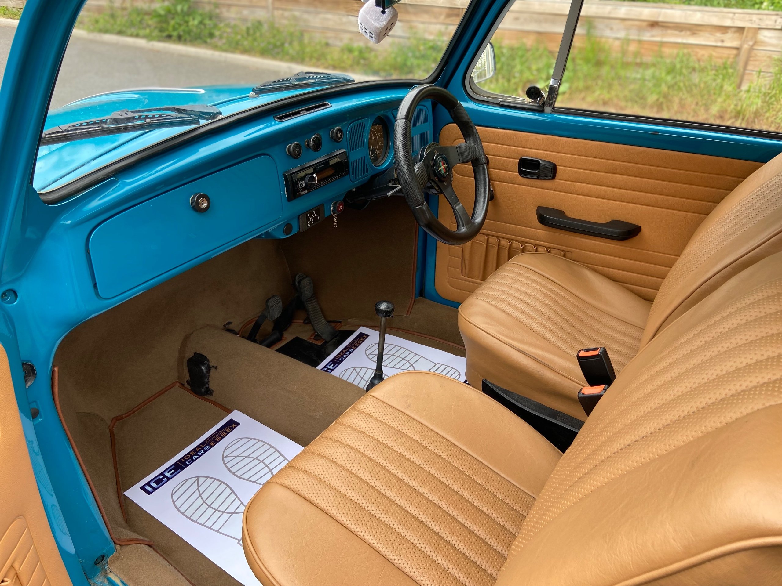 Blue with Contrasting Tan interior, New seats, Carpets, side panels, rear parcel shelf fitted with Pioneer speakers running from an up to date Pioneer Bluetooth system.